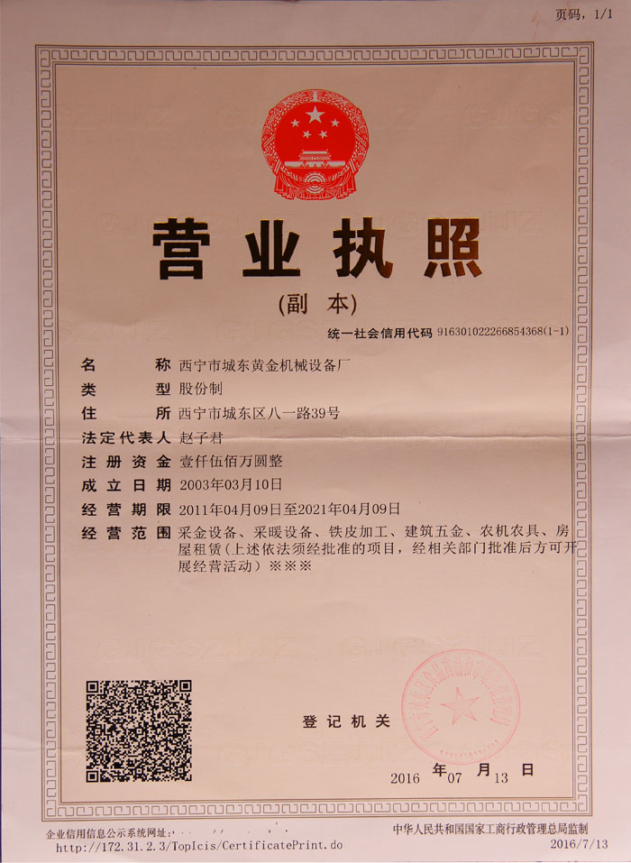 青海西宁黄金机械设备有限公司成立于1996年,原址为青海省西宁市城东区湟中路 72号(黄金宾馆旁) ,现搬迁至青海省海东市平安区河湟新区高铁南路102号,是青海一家生产采金机械设备为主的企业。是集采矿、采金设备制造、烤箱、铁床加工、大中型机械设备生产以及对外承接各种五金深加工的中等规模企业...